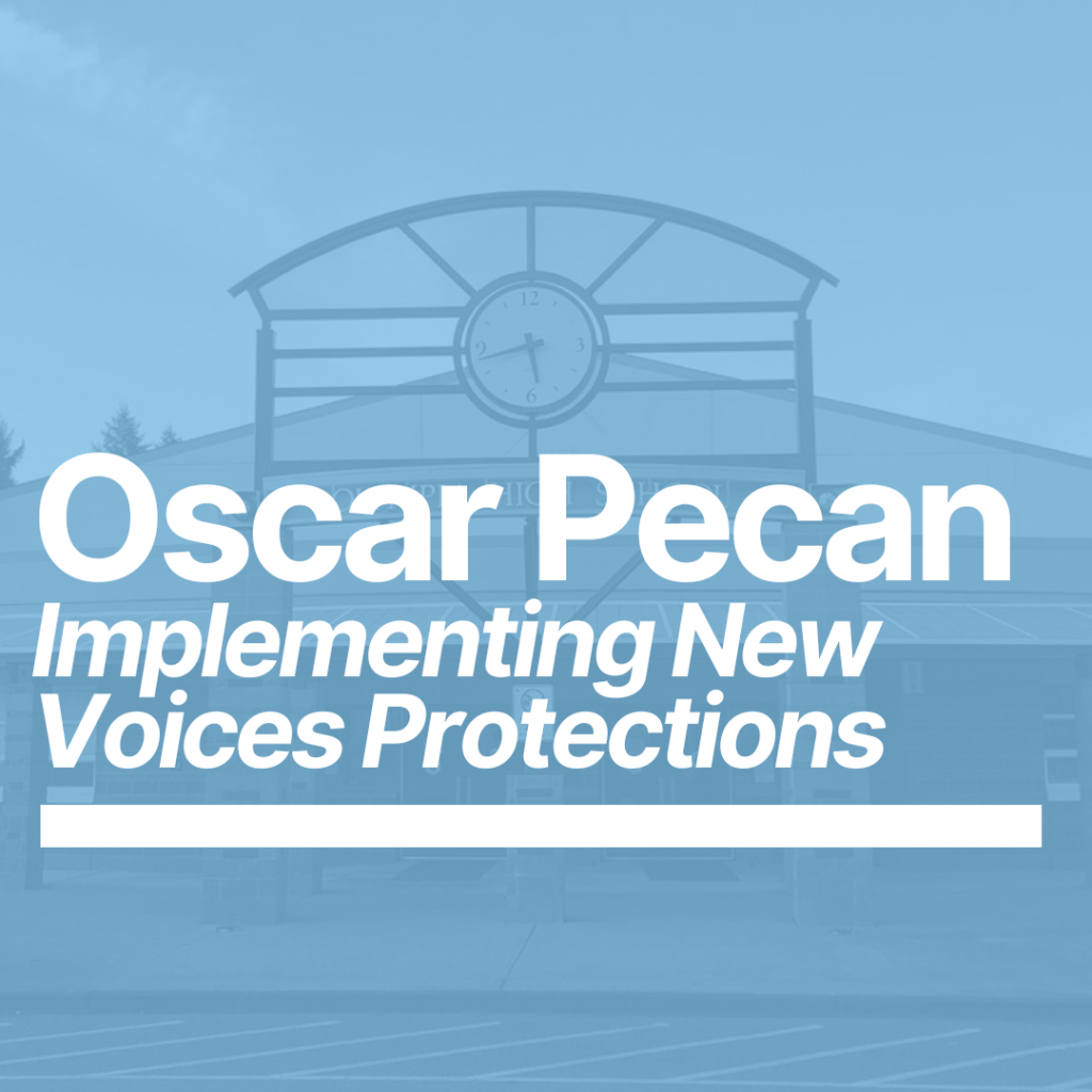 To ensure each New Voices law is implemented and honored, we proactively inform school and district administrators about the requirements of newly adopted laws, and we are educating students about their rights in every New Voices state. This year, we partnered with West Virginia University to create an innovative internship-classroom experience for two students to learn the fundamentals of the law passed there in 2023 and how to implement it. This partnership has resulted in three school districts passing new policies that ensure front-line administrators know their obligations to protect student voices.